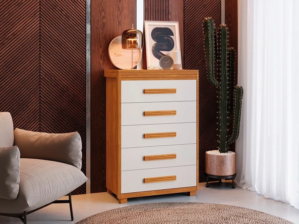 A cômoda Paris foi desenvolvida com um alto padrão de qualidade, para dar um ar sofisticado ao seu ambiente e tornar seu lar mais aconchegante e agradável! A disposição de suas gavetas facilita o dia a dia e comporta de melhor maneira suas roupas e objetos pessoais, podendo ser usada em vários cômodos da casa.