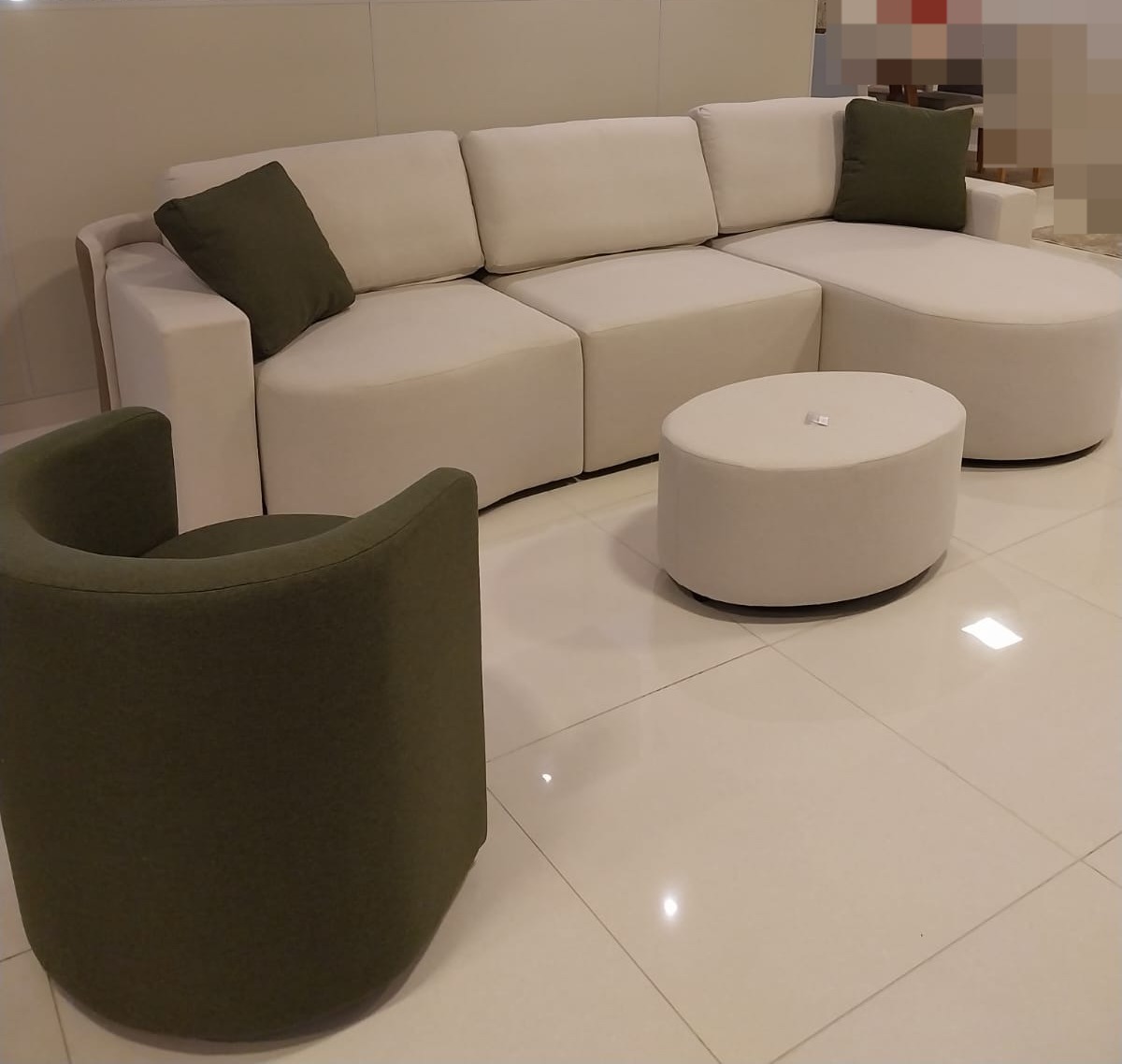 CONJUNTO DE SOFÁ COM CHAISE E POLTRONA